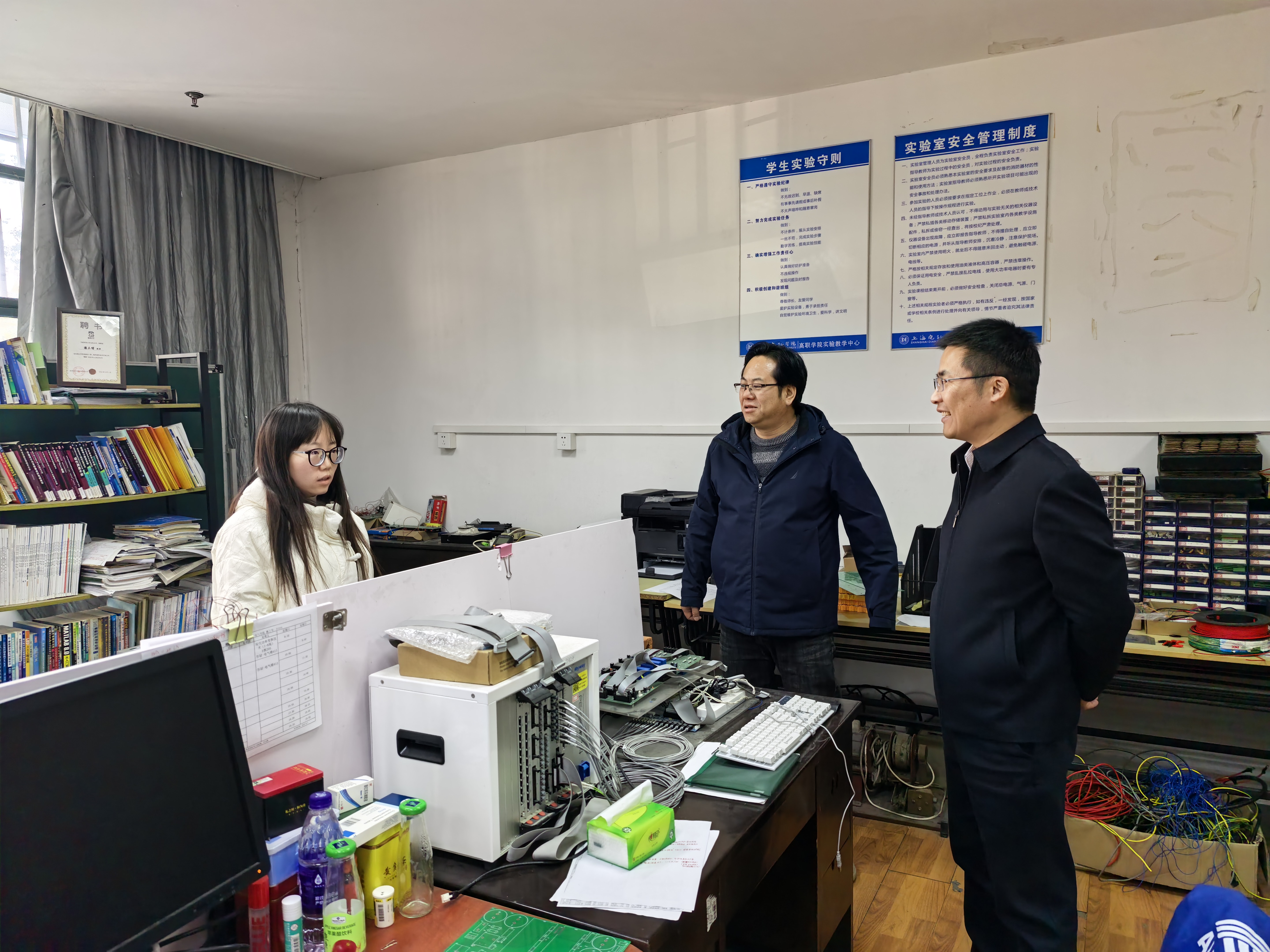 深入一线,开展全面排查。1月15日—16日,校党委书记鲁雄刚、党委副书记朱洪春、副校长王志恒亲自率队,组织党政办、学生处、研究生处、总务部、基建处、保卫处、二级学院及属地派出所,对临港、闵行两校区开展了寒假前安全大检查。检查组深入在建工地、学生公寓、食堂、实验室、保密室等重点场所,细致排查施工安全、消防安全、用电安全及食品安全等环节。校领导现场强调,安全是发展的底线,必须时刻绷紧弦、压实责,对发现的问题要立行立改、闭环管理,务必确保假期校园平安。